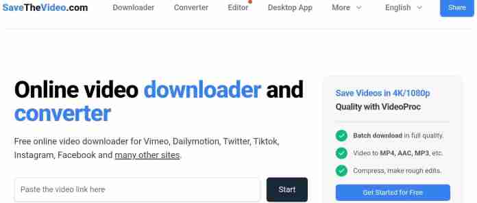 Wenn Sie nach einem vielseitigen Online-Video-Downloader suchen, ist SaveTheVideo die richtige Wahl. Mit dieser Seite können Sie ganz einfach Videos von einer Vielzahl beliebter Plattformen herunterladen, darunter unter anderem Vimeo, Dailymotion, Twitter, TikTok, Instagram und Facebook.