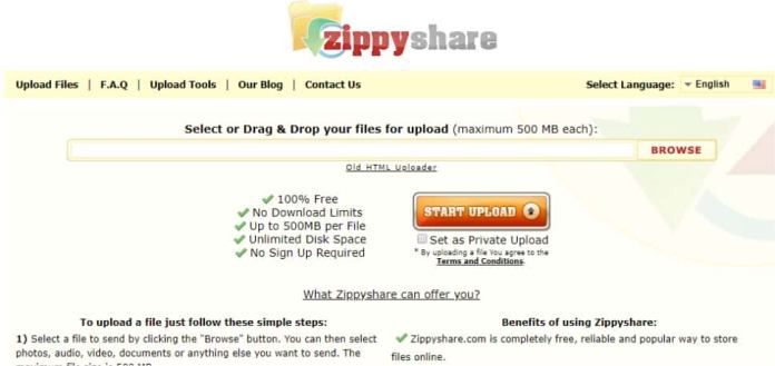 Eine der beliebtesten Websites für das Online-Hosting von Dateien ist Zippyshare, die dafür bekannt ist, dass Benutzer jeden Typ hochladen können von Dateien können Sie auf Zippyshare Videos, Bilder, Dokumente, Ordner und Dateien hochladen. Es gibt kein Download-Limit, aber Sie sind als kostenloser Benutzer auf nur 500 MB pro Upload beschränkt.