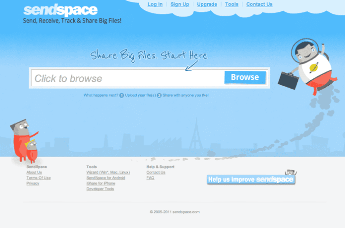 Send Space ist eine weitere Website, auf der Sie große Dateien anonym teilen können, es ist eine beliebte Website zum Hosten Dateien und ermöglicht Benutzern, dies alles auf einfachere Weise zu tun. Wenn Sie eine Datei an einen anderen Benutzer senden möchten, ohne Ihre Identität preiszugeben, können Sie dies auf Send Space tun, es ist eine kostenlose Website und auch sehr einfach zu verwenden.