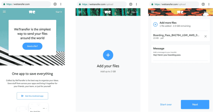 WeTransfer gibt bis zu 2 GB kostenlos, und Sie können Dateien hochladen und einen temporären Link haben, es gibt auch eine Option, sich für kostenpflichtige und Premium-Pläne zu entscheiden, aber wenn Sie nur möchten grundlegende Funktionen nutzen möchten, mit denen Sie Dateien anonym ohne Namen oder E-Mail-Adresse hosten können, ist WeTransfer eine der besten Websites, die Sie verwenden können.