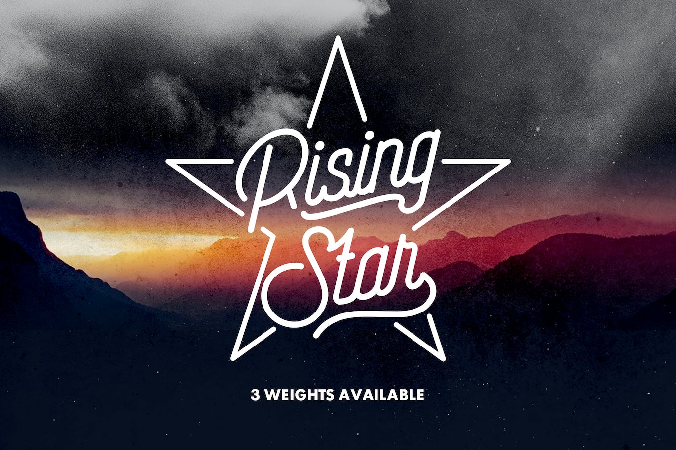 Inspiriert von nostalgischen Campingausflügen und Gelächter unter dem Sternenhimmel, dem modernen Rising Star Es macht Spaß, mit der monoline-Schriftart von Hindia Studio zu spielen. Die Rising Star-Schrift wurde entwickelt, um die Schönheit und Raffinesse des Kupferstichstils mit der natürlichen Pinselbewegung einzufangen. Und es tut dies, indem es sicherstellt, dass sich seine Buchstaben so nahtlos und natürlich wie möglich verbinden. Rising Star kommt in drei Gewichten; Regular, Light und Stamp sowie eine Vielzahl stilistischer Alternativen, was es zu einer beliebten Option für Websites, Speisekarten, Schilder, Poster und andere zeitgenössische Designs macht.