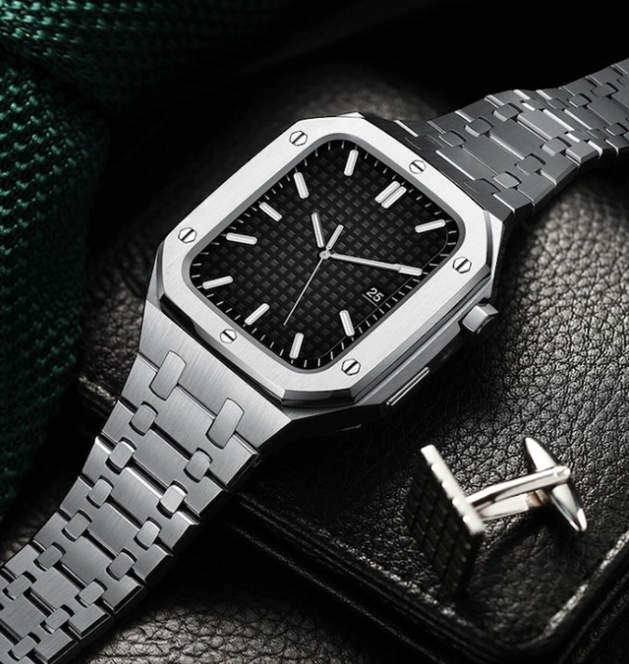 Durch die Neuinterpretation des Designs der Apple Watch mit dem Charme und der Persönlichkeit von Karbon wird sie zu einem Kunstwerk mit differenziertem Design ein Standardprodukt, das überall zu finden ist. Es ist kein Produkt aus gewöhnlichem Metall. Es ist ein Apple Watch Zubehör, das Sie vertrauensvoll verwenden können, da es aus der kohlenstoffarmen SUS-Serie hergestellt ist, die als Premium-Uhrenmaterial mit hervorragender Haltbarkeit, Hitzebeständigkeit und Kratzfestigkeit verwendet wird.