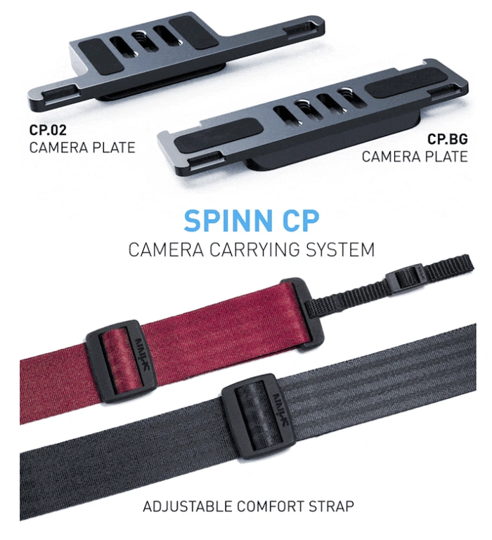 „Stellen Sie sich Ihr SPINN CP-Tragesystem selbst zusammen und wählen Sie aus folgenden Komponenten. Das Herzstück des Systems ist die Grundplatte – ohne sie geht nichts. Beide Grundplatten passen grundsätzlich auf alle DSLR-und spiegellosen Kameras. Die CP.02 Kameraplatte ist für jede DSLR und spiegellose Kamera geeignet. Es ermöglicht den sofortigen Zugriff auf das Batteriefach fast aller gängigen Kameras.“