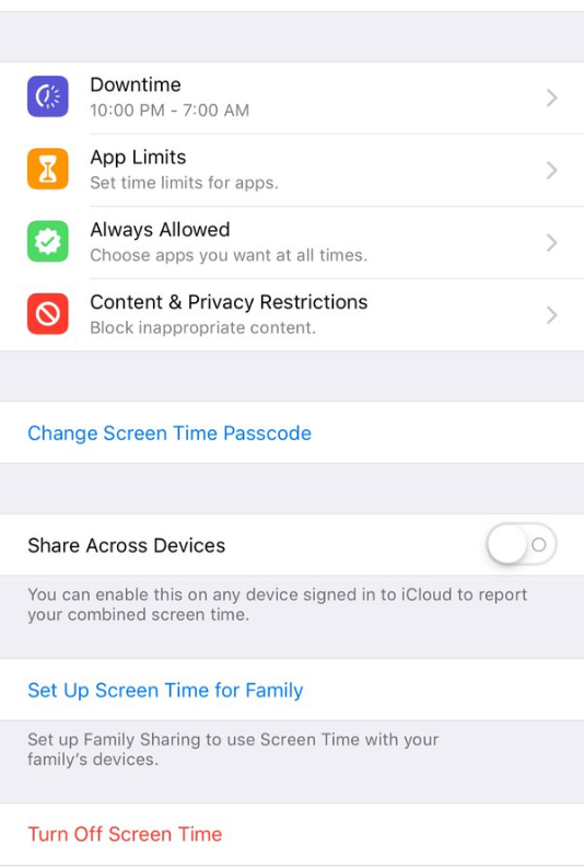 2. Überprüfen Sie die gemeinsame Nutzung von Bildschirmzeit.