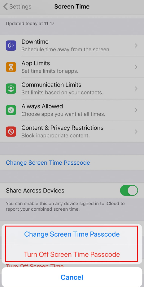 3. Bildschirmzeit-Passcode deaktivieren.