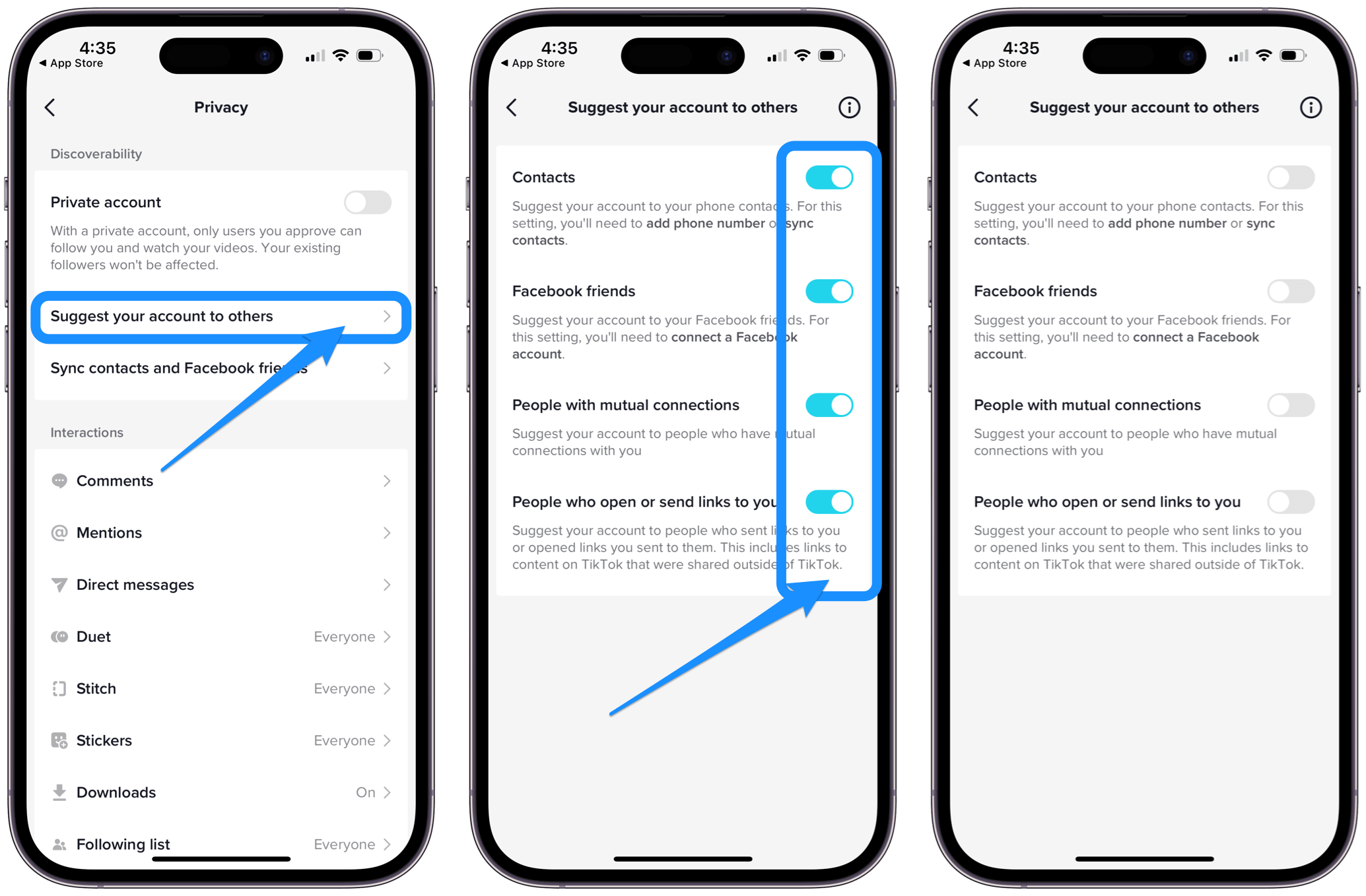 TikTok scheint Ihre Kontakte zu kennen, wenn Sie einen Freund haben, der seine Kontakte mit TikTok synchronisiert. Dann verbindet dich TikTok mit den anderen Kontakten deines Freundes. Wir können dies ausschalten; siehe unten.