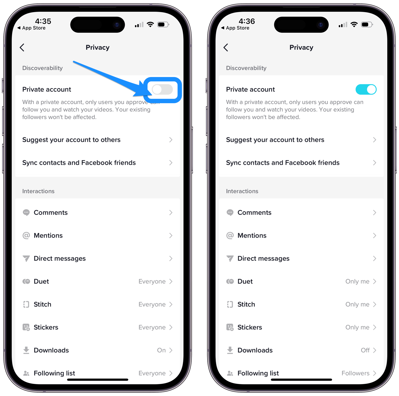 Wählen Sie im Einstellungsmenü Datenschutz die Option Privates Konto.