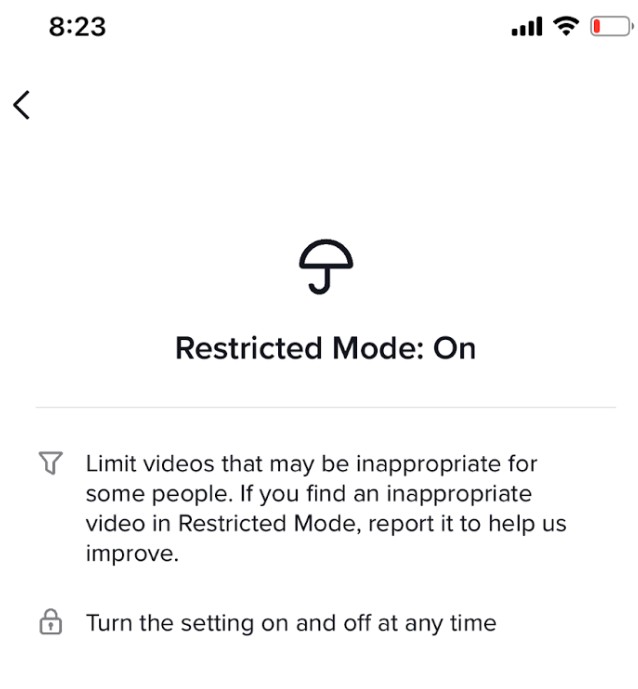 Wenn der eingeschränkte Modus aktiviert ist, filtert TikTok Inhalte heraus, die basierend auf Ihren ausgewählten Einstellungen möglicherweise nicht für alle Altersgruppen geeignet sind. Denken Sie daran, dass diese Funktion nicht narrensicher ist und einige unangemessene Inhalte immer noch durchschlüpfen können, aber es ist ein großer Schritt in die richtige Richtung, um Ihrem Kind ein sicheres und angenehmes Erlebnis in der App zu gewährleisten.