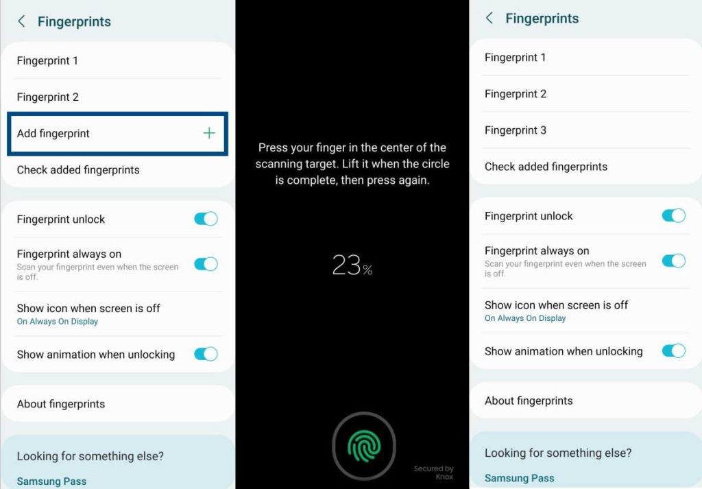 點擊打開添加指紋選項,然後按照屏幕上的說明添加新指紋。