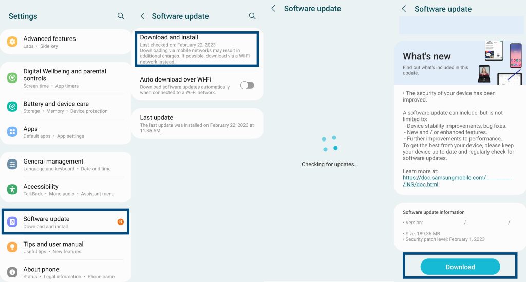 轉到設置 » 軟件更新 » 點擊下載並安裝。如果有可用更新,點擊下載。下載完成後,手機會顯示安裝通知。點擊安裝更新。