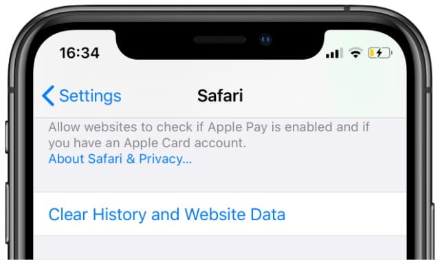 打開 iPhone 上的設置應用。向下滾動並點按 Safari。向下滾動並點按清除歷史記錄和網站數據 按鈕。