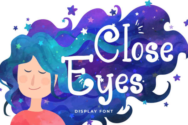 Close Eyes 是一種具有漂亮字符的現代顯示字體。這種字體易於使用,在 PC 和 Mac 上都能完美運行。它有 OTF、TTF 和 WOFF 格式。您可以將此字體用於 s、品牌、包裝、邀請函、文具、產品設計、標籤、社交媒體帖子等。