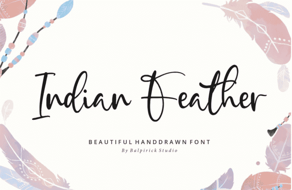 Indian Feather是一款甜美浪漫的書法字體,外觀漂亮。人物很奢華,適合任何設計。使用此字體,您可以根據需要創建有吸引力的藝術品。它支持多種語言,並提供 OTF、TTF 和 WOFF 文件格式。