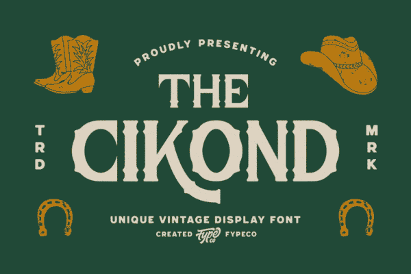 Cikond 是一種複古顯示字體,靈感來自牛仔標誌,看起來很有美感。它為設計增添了復古和經典的氣息,滿足了各種設計需求。這種字體帶有手工風格,看起來優雅時尚。