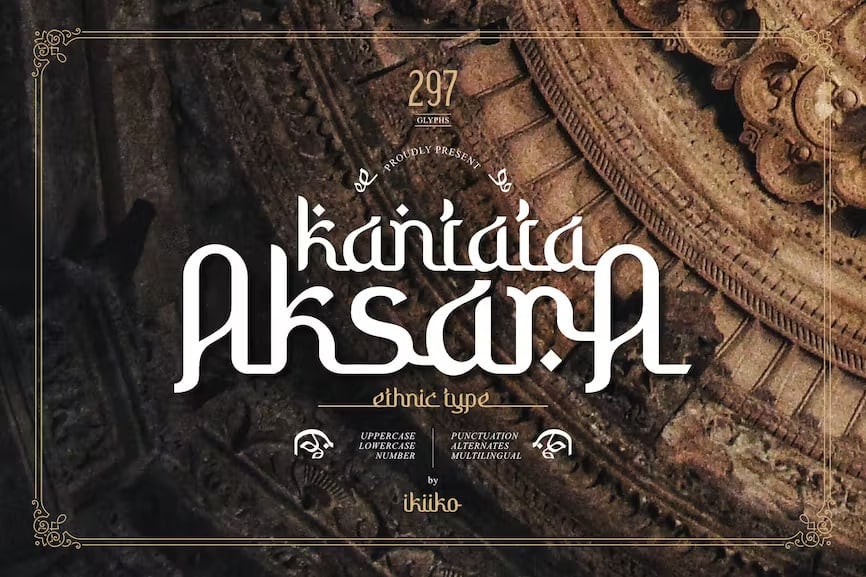 The Kantata Aksara 是一種外觀漂亮的字體。這種印度字體從正宗的印度文化中汲取靈感,使其非常適合徽標、婚禮請柬、海報、電影標題、瑜伽和冥想、雜誌、印度美食菜單、名言、美容產品、品牌等設計。