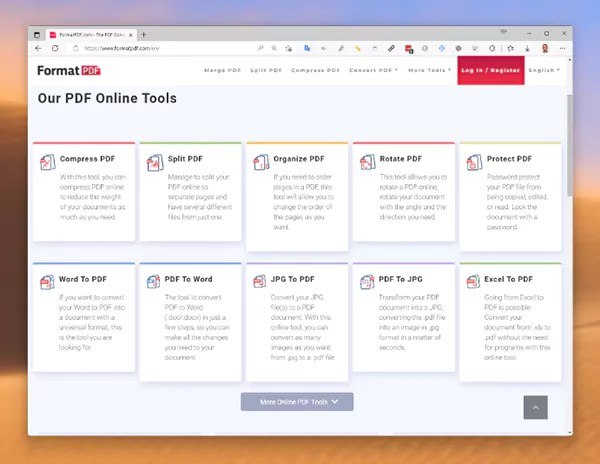 由於您無需下載任何軟件即可使用此工具,您可以直接在搜索欄中搜索 FormatPDF.com。然後通過從主頁選擇所需的工具來完成您的任務。例如,如果您需要將 PDF 文檔更改為不同的文件類型,請選擇“PDF 轉換器”工具。