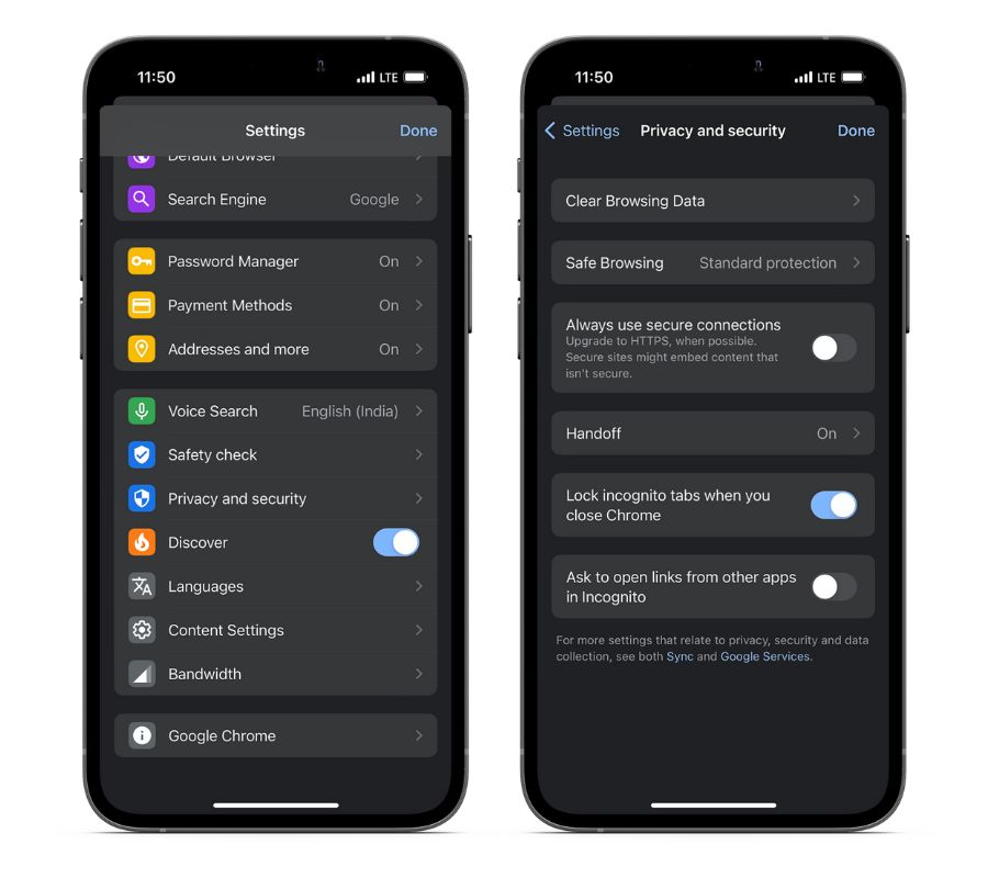 您可以退出 Google Chrome 應用,而不必擔心關閉隱身標籤。因為下次您(或其他任何人)前往 Chrome 中的隱身標籤時,您將需要使用 Face ID 或 Touch ID 解鎖它。