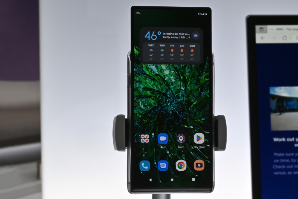 兩個可滾動設備的小問題是它們看起來很可笑。當手機的“潛望鏡”攝像頭像從星球大戰背景生物試鏡中被拒絕一樣從頂部伸出時,這已經夠糟糕的了。現在,一塊薄薄的屏幕豎了起來,看起來就像丟失了一樣。它看起來很脆弱。如果附近的一隻蚊子膽敢朝它的大致方向打噴嚏,它就會發出一種嘮叨的感覺。