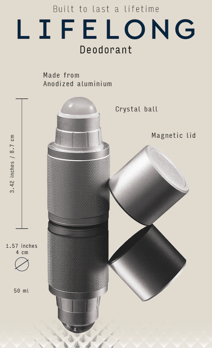 “許多品牌的產品只能使用幾個月,因此您不得不一次又一次地購買。我們想要與眾不同和誠實,並創造一些可以讓您變老的東西。就像一個值得信賴的朋友。除臭劑很難看,是您通常藏在浴室裡的東西。這裡不是這種情況。 Lifelong 除臭劑增添了一絲品質和聲望,同時消除了醜陋的一次性塑料。 “