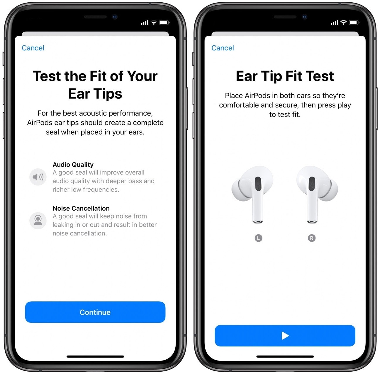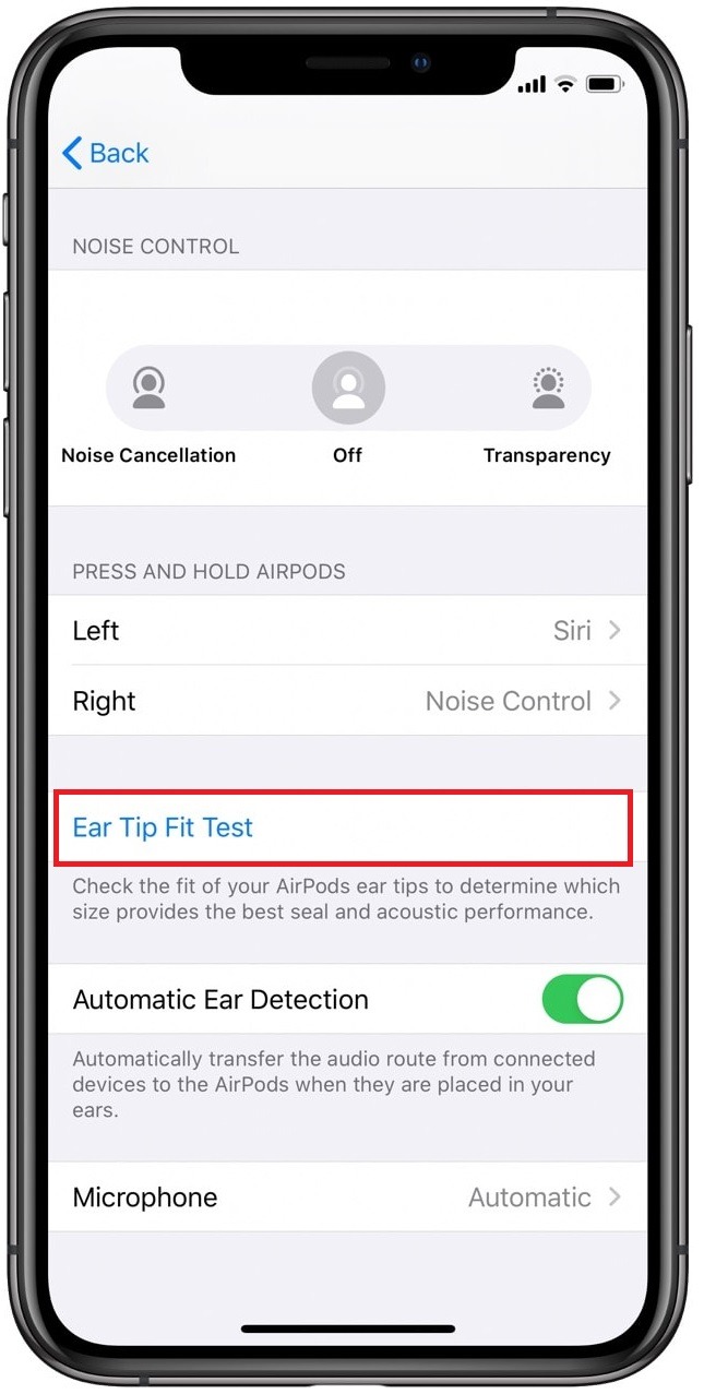 Apple 還建議試用為 AirPods Pro 提供的不同耳塞,然後攜帶退出 Ear Tip Fit 測試,直至通過。這裡的關鍵是選擇最適合您的耳塞以及出色的密封性以消除噪音。