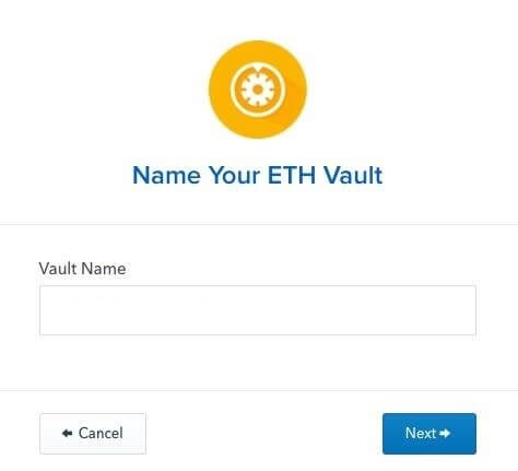 第 4 步:現在,一旦您選擇了您想要的加密貨幣要為其創建保險庫,Coinbase 會要求您為其提供一個保險庫名稱。所以隨便取一個你喜歡的名字(確保名字容易記住)。給它命名後,點擊下一步按鈕。