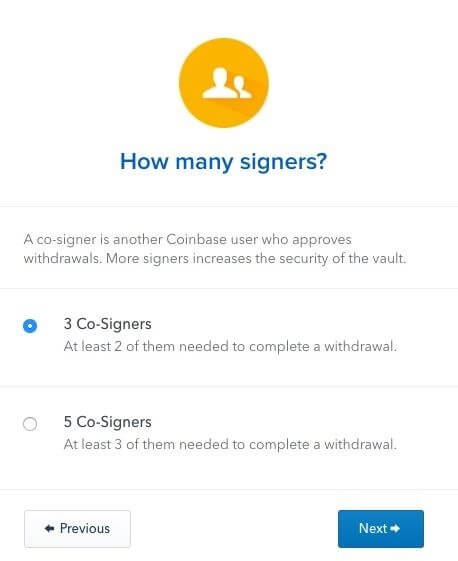 第 1 步:因此,如果您選擇群組,您現在需要選擇號碼您想要的共同簽署人的數量:3 位共同簽署人 或 5 位共同簽署人。