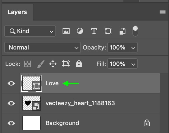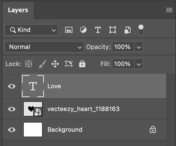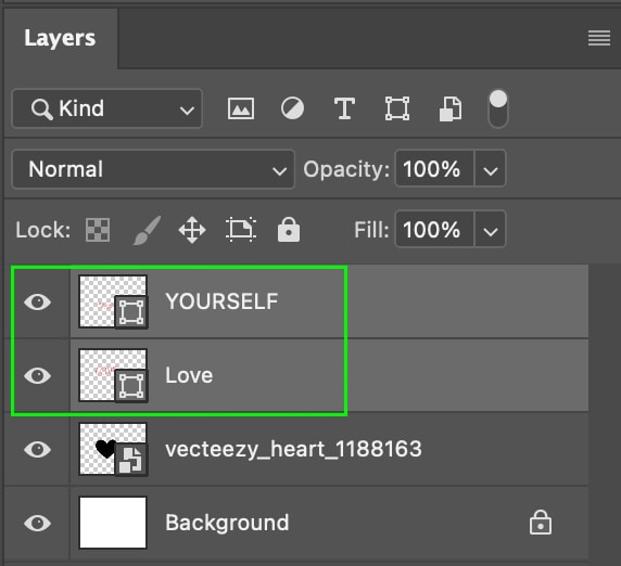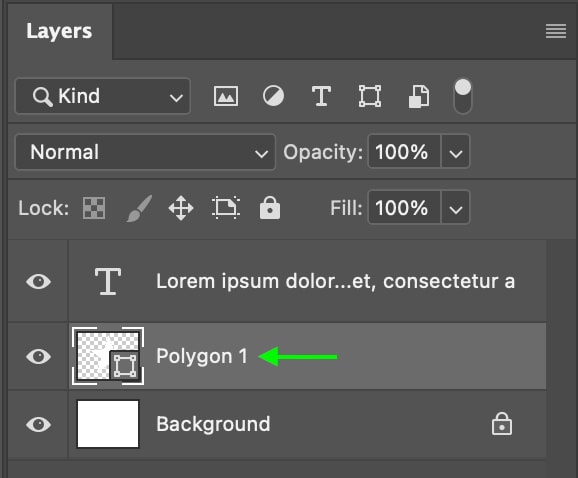 您會在上面看到新的文本層 圖層面板中的形狀或圖像圖層。