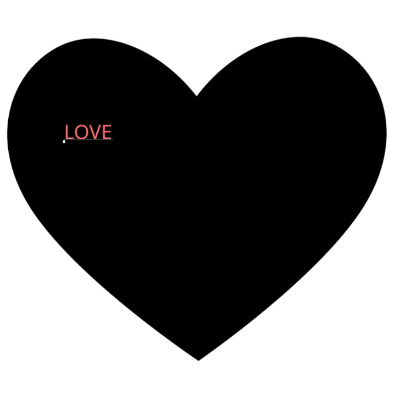 在我使用的心形中,我可以將第一個和最後一個字母與形狀的兩側對齊,但我無法將中間字母與心臟的頂部。