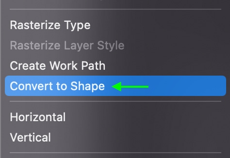 接下來,您您需要將文本轉換為形狀,以便您可以扭曲它。為此,前往圖層面板並右鍵單擊或按住Control鍵並單擊文本圖層。