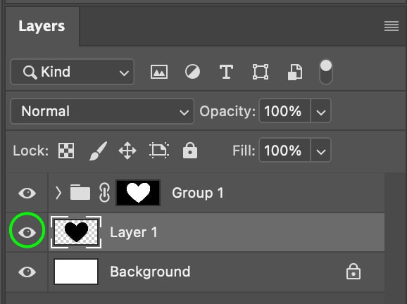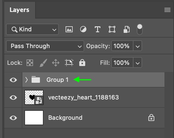 圖層現在將在圖層面板中分組 u在組 1 下。按圖層左側的箭頭圖標可查看組中的所有圖層。