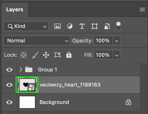 只需將文件從您計算機的文件夾拖到 Photoshop 文檔中。我今天要使用的形狀是我從 free heart PNG 形狀href=”https://www.vecteezy.com/”target=”_blank”>Vecteezy。