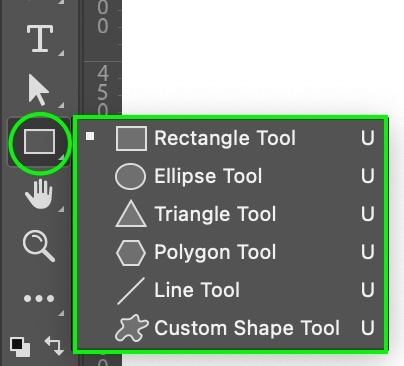 像前面的方法一樣,您可以使用形狀工具 (U)。您可以單擊並按住以查看不同的形狀選項。