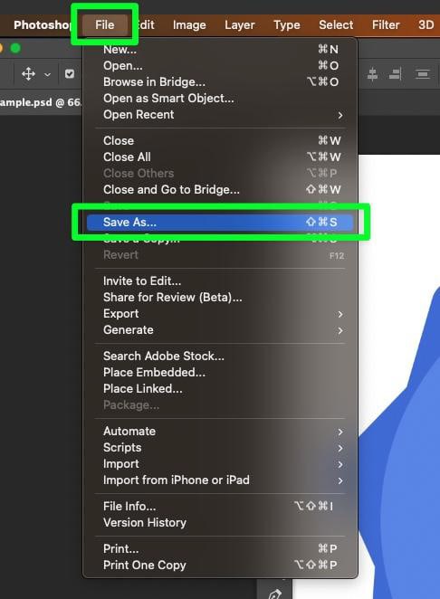 要將您的項目保存為 PSD 文件,請轉到文件 > 另存為。