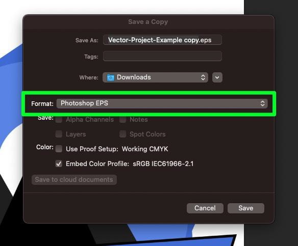 第 2 步:將格式更改為 Photoshop EPS
