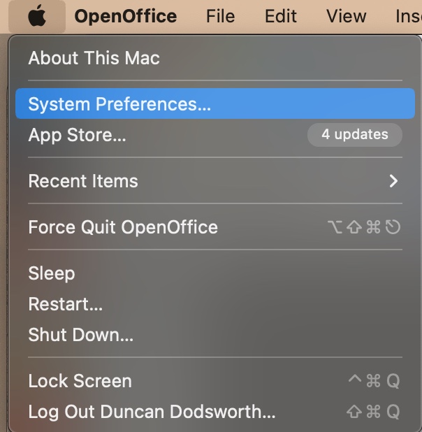 點擊屏幕右上角的蘋果圖標並選擇系統偏好從下拉列表中。