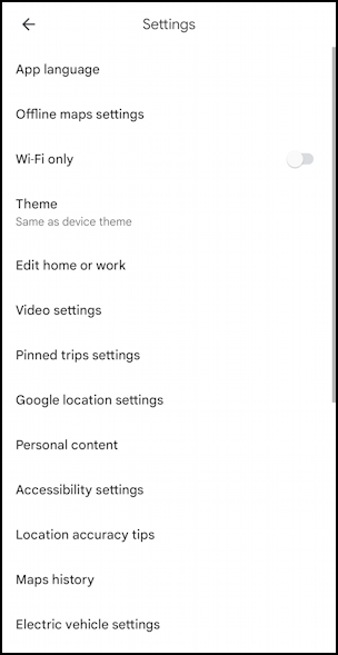 相當多的設置因為原來Google Maps 是一個非常複雜的工具,有很多你可以調整和改變的東西。但是,點擊底部的“Electric vehicle settings”以輸入您的插頭類型,並且只顯示與您的車輛兼容的充電站。