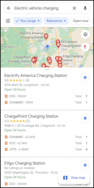 一些單獨的充電公司應用程序(如 ChargePoint)也可以顯示是否插頭可用或正在使用中,但由於在途中可能會發生變化,因此它非常有用。也許谷歌會添加這個額外的信息片段(或者至少是插頭的狀態,如果有任何損壞或禁用)。目前,這就是您讓 Google 地圖幫助您找到兼容充電站的方式。