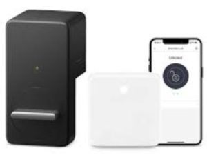 SwitchBot Lock 是一種智能門鎖,可以添加到現有的門上。它與藍牙配合使用,可以通過 iPhone 或 Apple Watch 上的 SwitchBot 應用程序鎖定和解鎖。它用 3M VHB 膠帶粘在你的門上,你用一個小塑料抓手握住並轉動鎖的拇指轉動。你可以從 Switchbot 的網站購買這個產品。