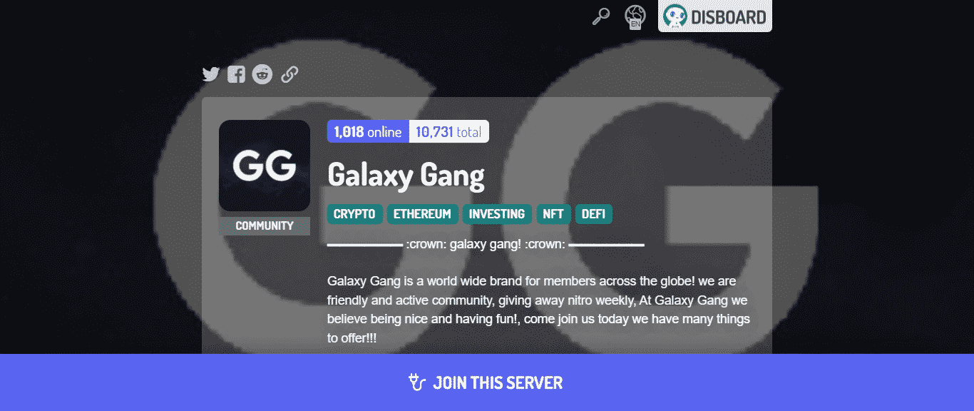 Galaxy Gang 是一個由志同道合的人組成的全球社區,他們討論各種主題,包括 NFT、DEFI、加密、以太坊和投資。這是一個充滿活力的社區,擁有有趣且知識淵博的成員,以及每週的 nitro 獎品。