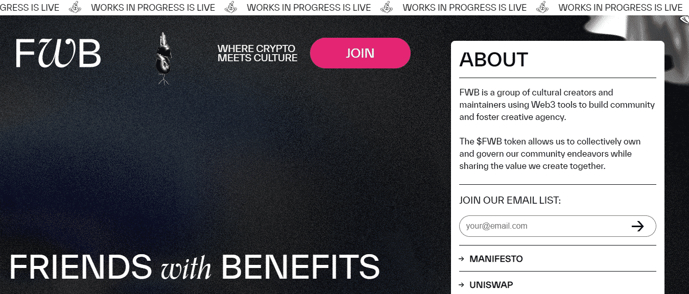仍然是群聊,但范圍很大更大:FWB 是一個幫助人們尋找新音樂的平台、一個在線雜誌、一個創業孵化器,以及一種供加密貨幣投資人使用的彭博終端。 Yves Tumor 和 Erykah Badu 是參加過派對的一些藝術家。 Andreessen Horowitz 是世界上最強大的風險投資公司之一,為其提供了 1000 萬美元的資金,使其成為當今最強大的在線加密貨幣社區之一。