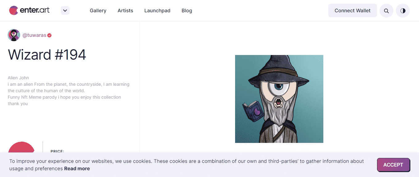 Enter.art 是一個通貨緊縮的實用代幣驅動的基於 NFTART 的 NFT 市場。讓 Enter.art 與眾不同的是他們對教育的重視,這主要是通過他們的網站來完成的。雖然他們的 Discord 專注於在其平台上列出的藝術家,但他們的網站提供了大量有用的材料,可幫助您快速了解 NFT 的所有內容。