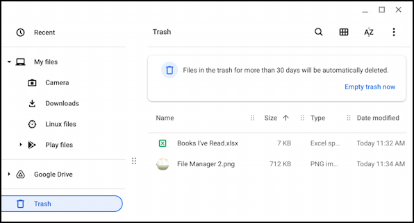 我知道,我們都應該將每個文件存儲在 Google Drive 這樣它們就永遠可用,但並不是每個人都這樣工作;有時本地文件是可行的方法。幸運的是,最新版本-版本 109-回收站/垃圾桶剛剛作為一項功能出現,就好像它一直是 ChromeOS 的一部分。這聽起來像是卡通反派可能會說的話,實際上,你幾乎可以想像他們看起來很狡猾並說“垃圾?我們一直都有垃圾功能!”