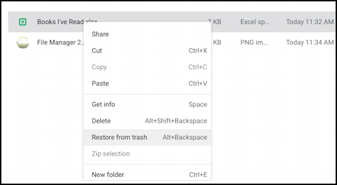 請記住:在 ChromeOS 的桌面上不能有任何東西,因此您也不能將文件或文件夾從回收站拖到桌面上。只需將它們移到“我的文件”即可。