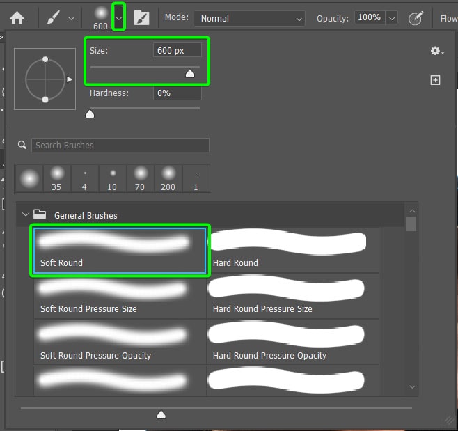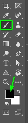 Em seguida, selecione a Ferramenta Pincel (B ) e defina a cor do primeiro plano como preto (ao lidar com máscaras de camada, ocultações de preto e revelações de branco).