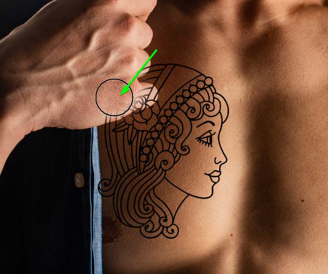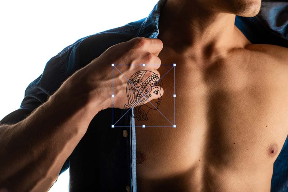 Em seguida, use a Ferramenta Mover (V) para colocar a tatuagem sobre o local onde você deseja no corpo.