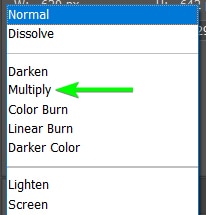Para alterar o modo de mesclagem, localize o menu suspenso no Painel de Camadas que diz Normal, assim é o modo de mesclagem padrão de e muito camada.