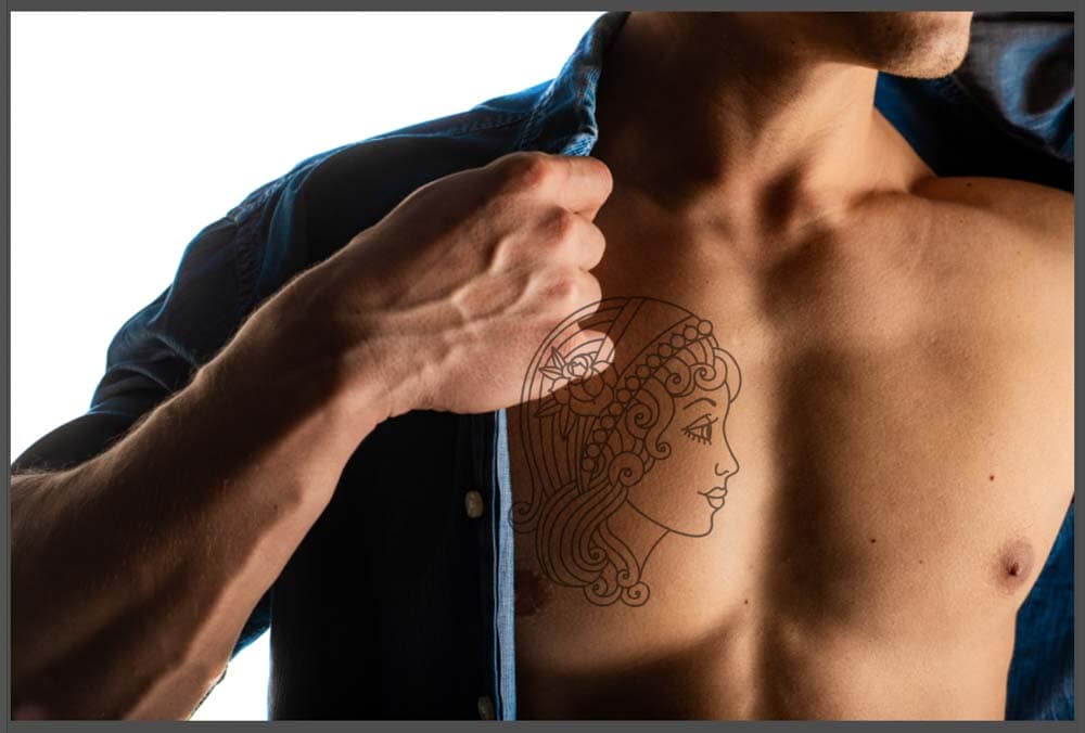 Neste tutorial, você aprenderá como adicionar uma tatuagem de duas maneiras diferentes. O primeiro método funciona com uma tatuagem preta, enquanto o segundo método explica como adicionar uma tatuagem colorida realista.
