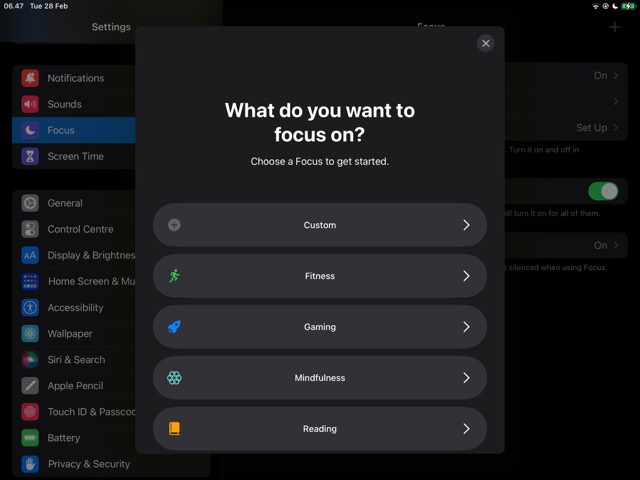Ao baixar o versão mais recente de qualquer sistema operacional Apple que você usa, você notará uma seleção de modos de foco pré-fabricados já em seu dispositivo. Isso inclui Trabalho, Pessoal e Leitura.