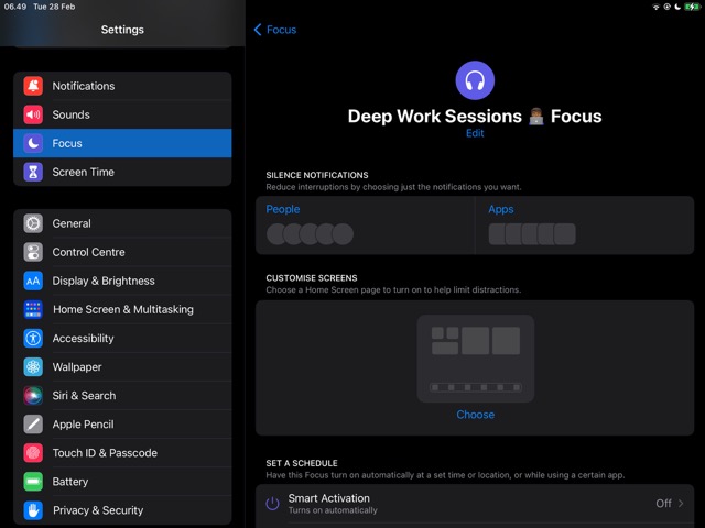 A história, no entanto, é um pouco diferente se você estiver em um iPhone ou iPad. Ao criar um Modo de Foco, você pode clicar nele depois; ao fazer isso, você verá uma opção chamada Editar próximo ao topo. Se você selecionar isso, poderá alterar suas cores e ícones.