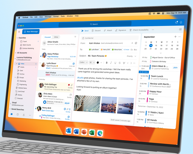 Perdue diz ainda:”Com o Outlook, você terá uma interface de usuário moderna e bonita que foi projetada e otimizada para macOS. E esses aprimoramentos ir muito além do nível da superfície. O novo Outlook é otimizado para Apple Silicon, com desempenho rápido e velocidades de sincronização mais rápidas do que as versões anteriores. Para ajudá-lo a ficar por dentro de seu e-mail e calendário enquanto usa outros aplicativos, você pode visualizar sua agenda usando um widget e ver lembretes na Central de Notificações. Também estamos dando uma olhada nos próximos eventos do calendário na barra de menus (em breve).”